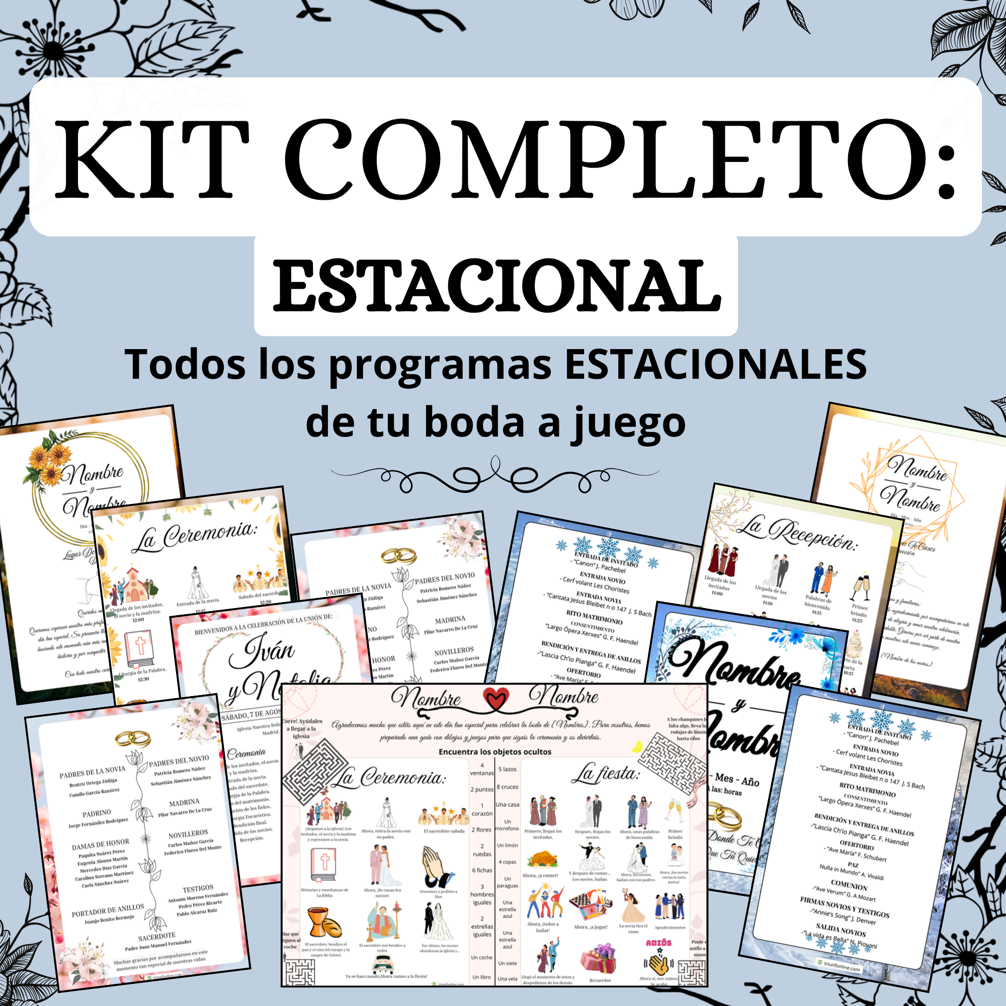 š Organiza toda tu boda con una armonĆa visual que refleje la belleza Ćŗnica de la estación en la que celebras tu gran dĆa, gracias a este Kit de Programas Estacionales, diseƱado para adaptar cada detalle a la esencia que elijas: de la primavera, el verano, el otoƱo o el invierno.