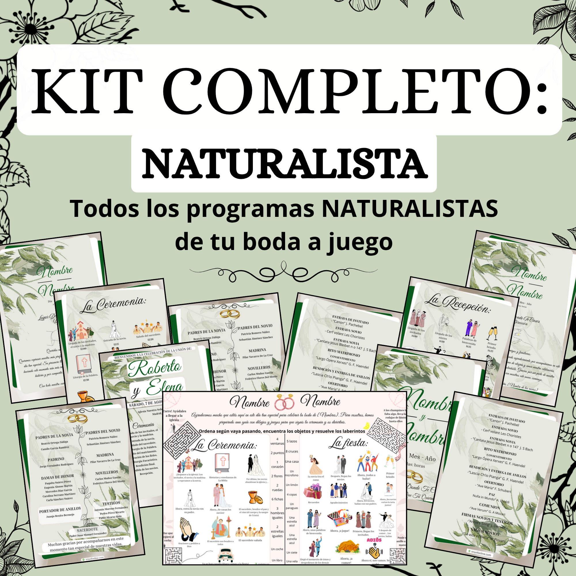 💍 Organiza toda tu boda con una armonía visual fresca y en sintonía con la naturaleza gracias a este Kit de Programas Naturalistas, creado para que cada detalle de tu celebración respire serenidad, pureza y un encanto natural inigualable.