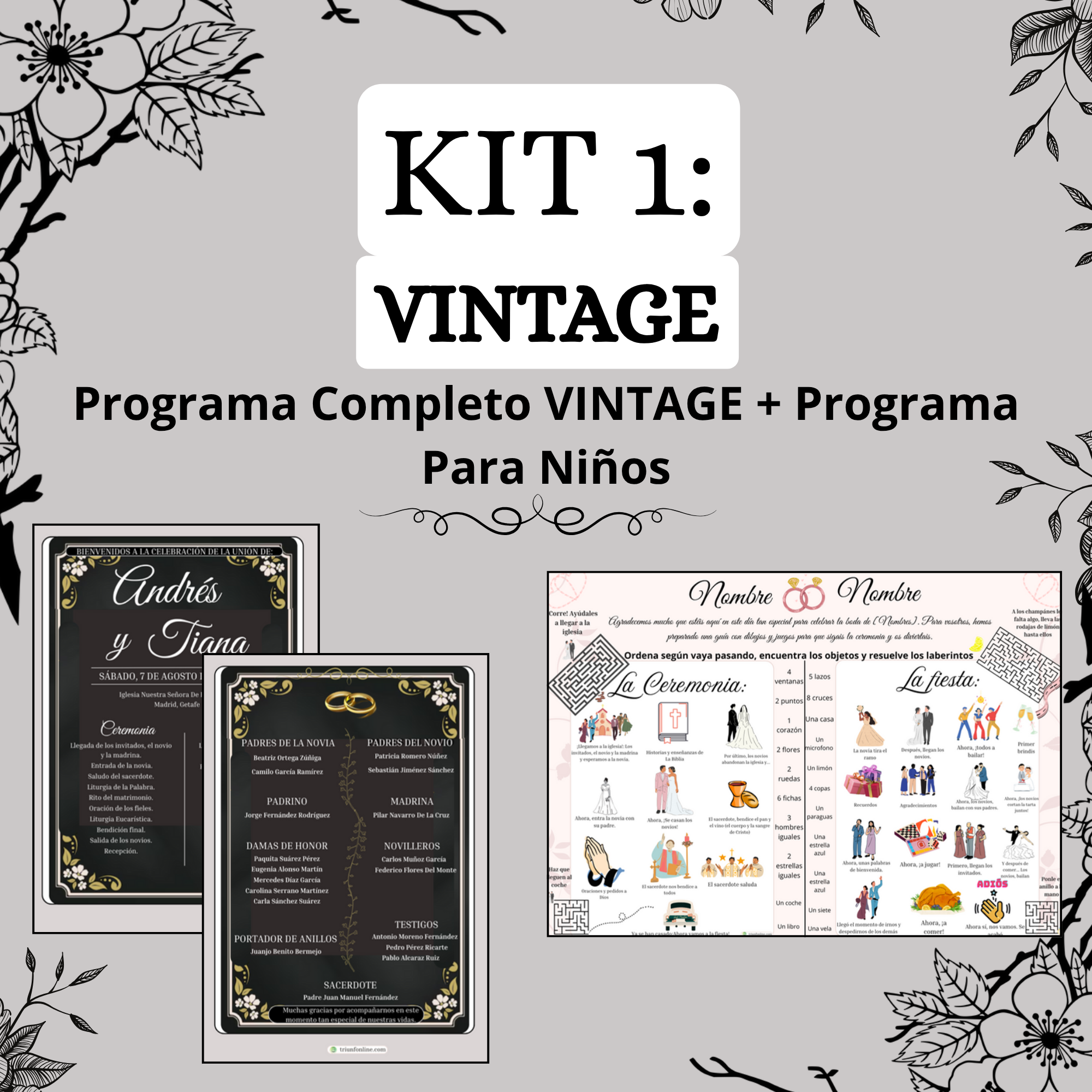 💍 Dale a tu boda un toque nostálgico y romántico con este Kit de Programas Vintage, perfecto para parejas que aman los detalles antiguos y la calidez de lo clásico renovado.