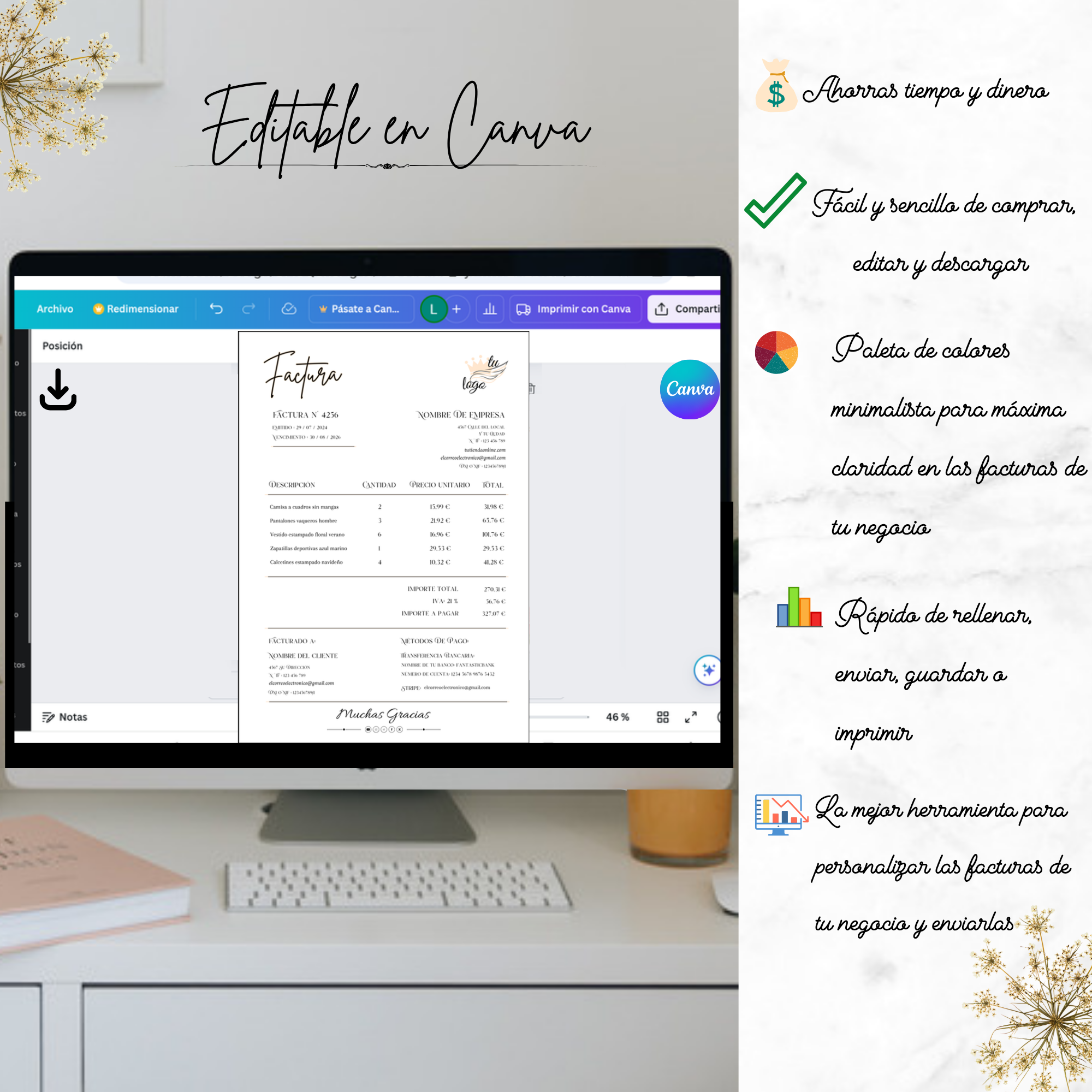 🖥️ Entrega digital editable, lista para personalizar en pocos minutos y utilizar profesionalmente.