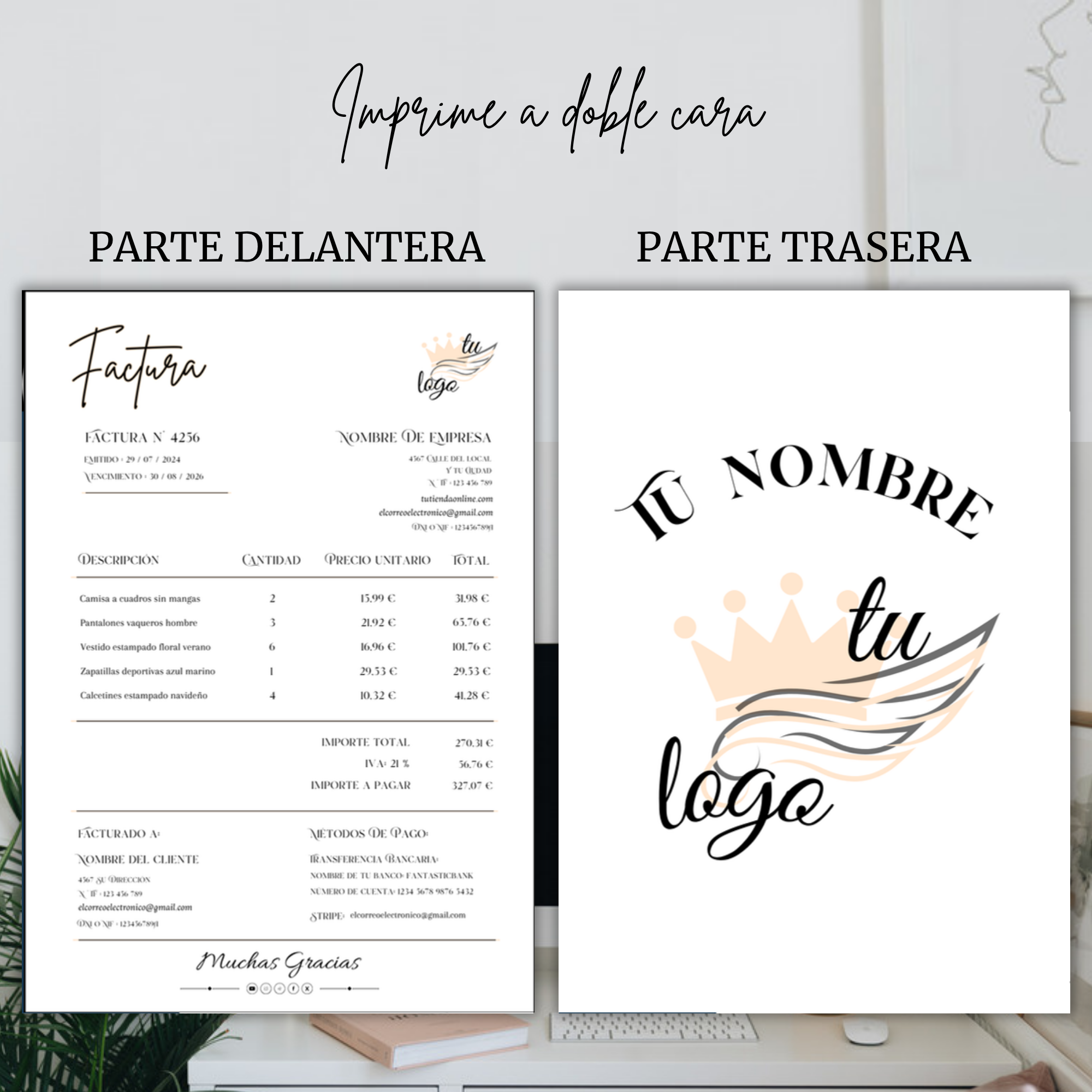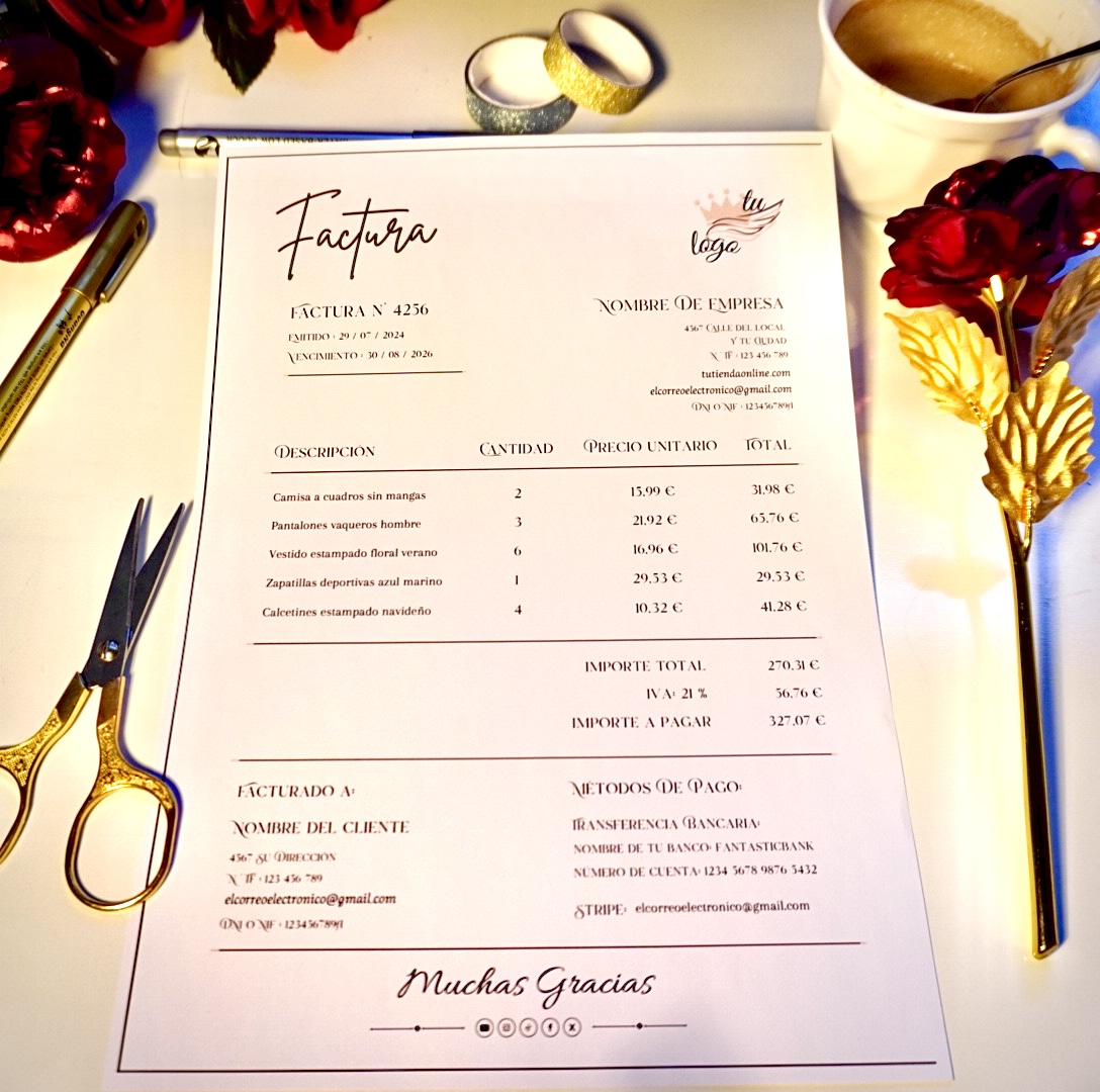 🎯 Una factura que proyecta orden, feminidad y profesionalismo, perfecta para mujeres que desean una imagen pulida y moderna incluso en los aspectos administrativos de su negocio.