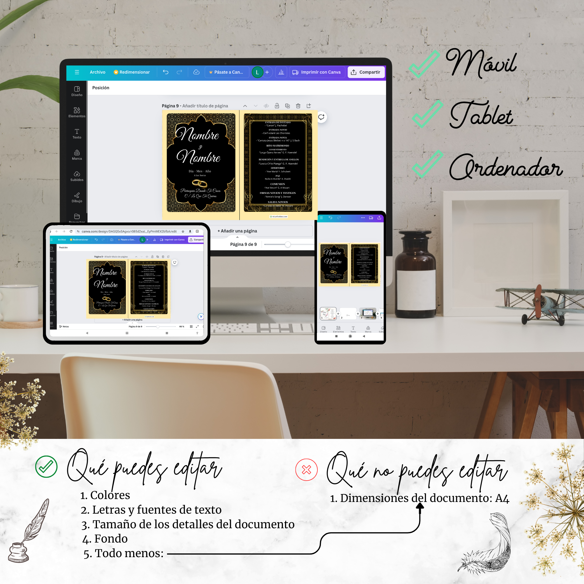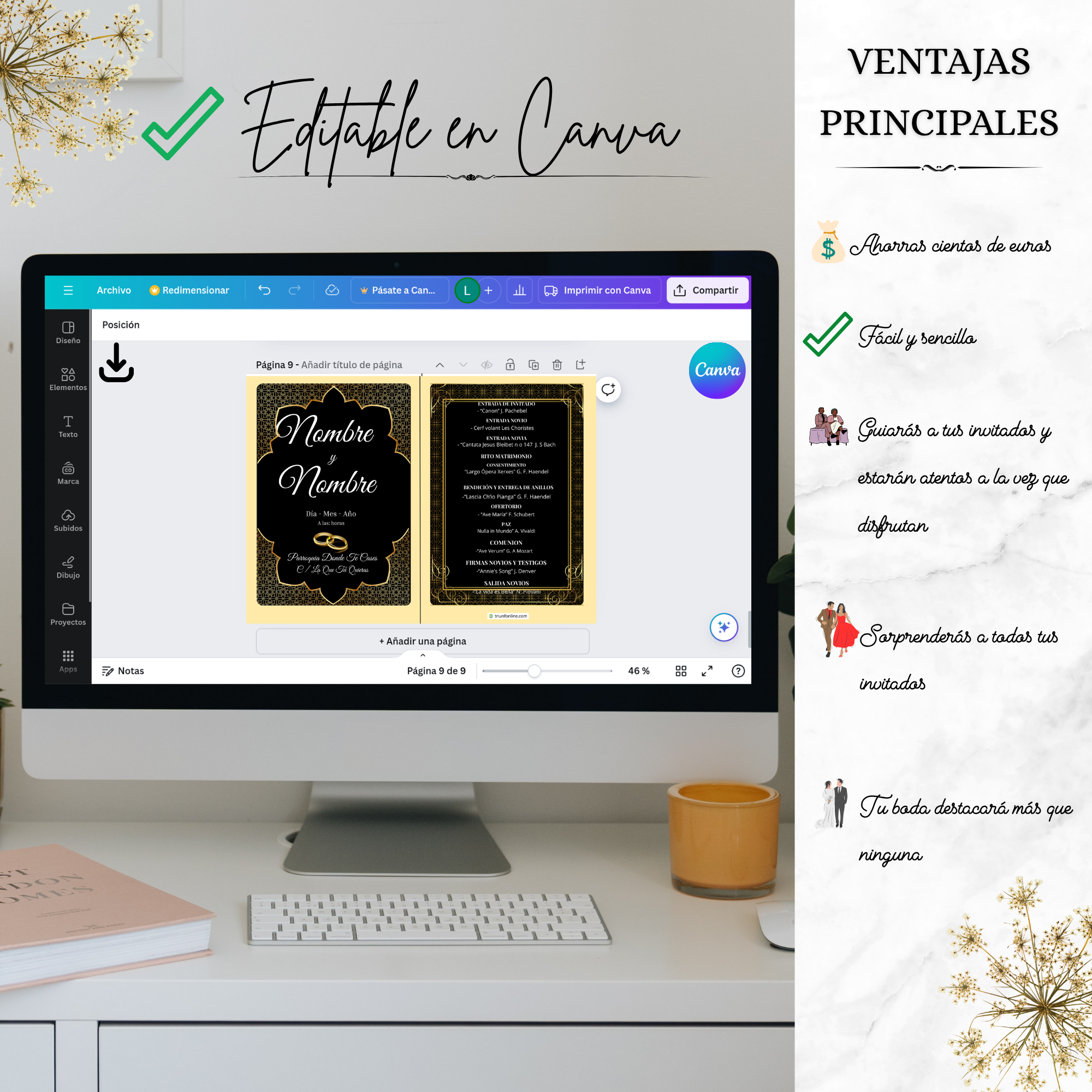 🎯 Coordínalo con sus otras opciones a la par (programa de ceremonia, de recepción y completo) para lograr una coherencia visual impecable durante todo el evento.