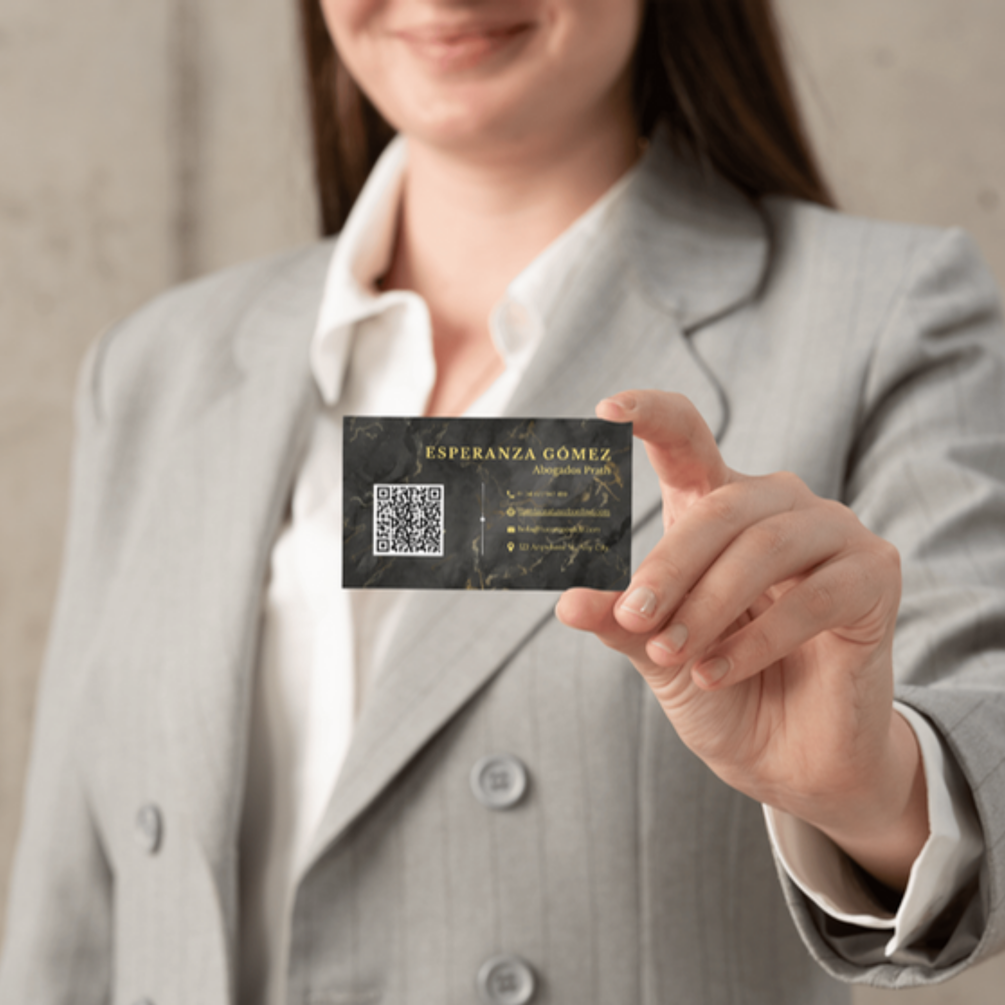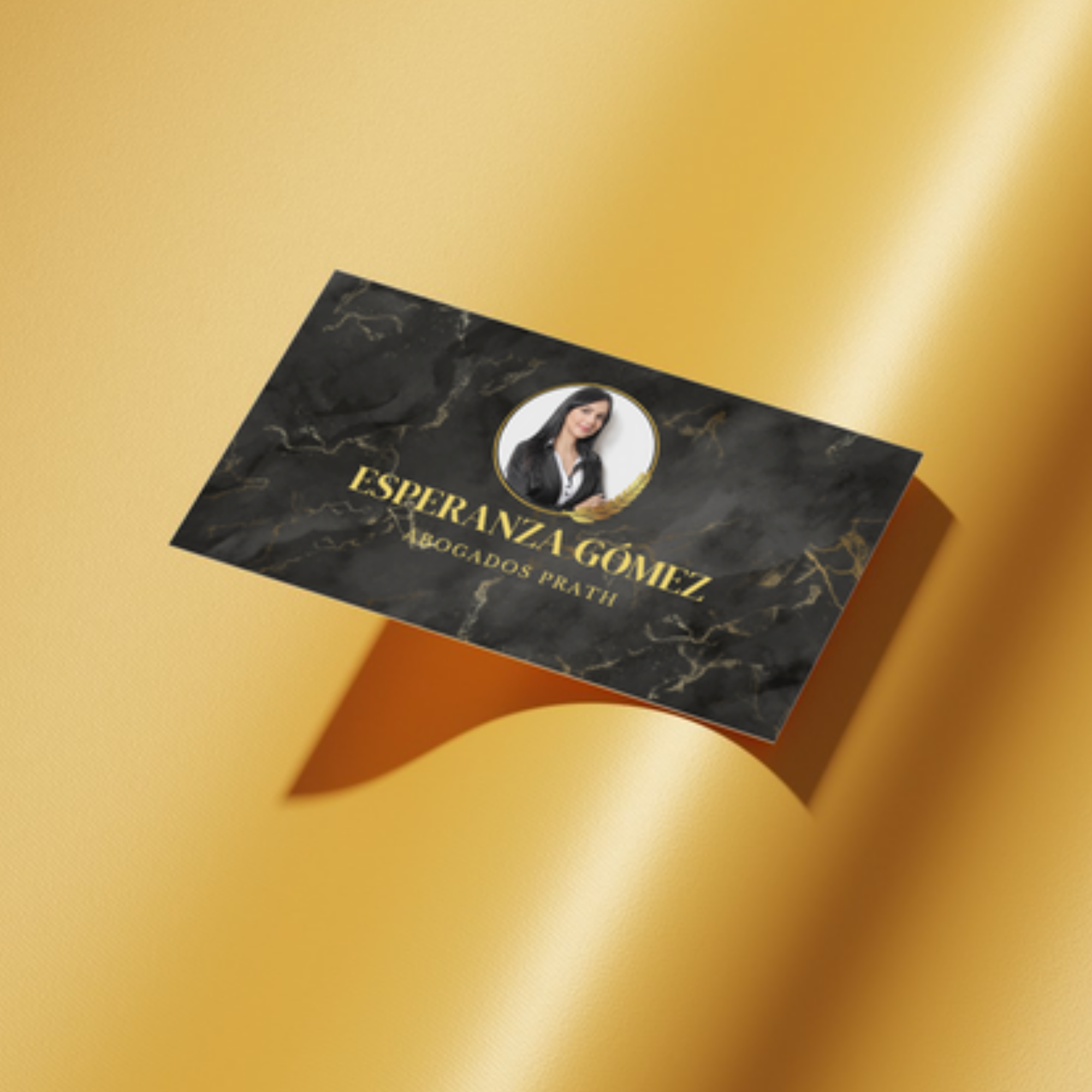 Una propuesta sofisticada y con un aura de exclusividad: el fondo negro marmolado realzado con vetas doradas aporta un toque lujoso y enigmático. Ideal para emprendedores que quieren transmitir elegancia, poder y un toque distintivo que capture la atención con sutileza.