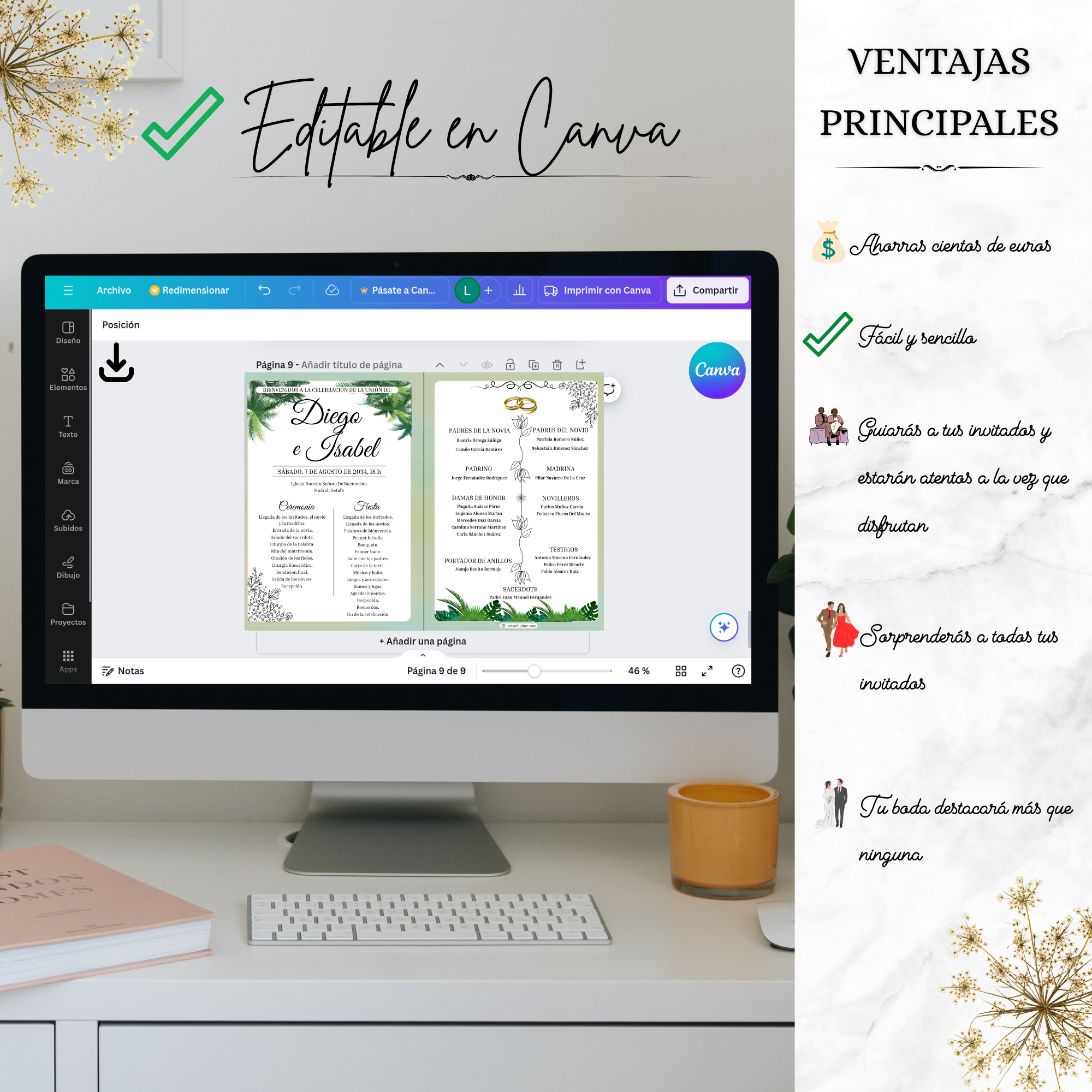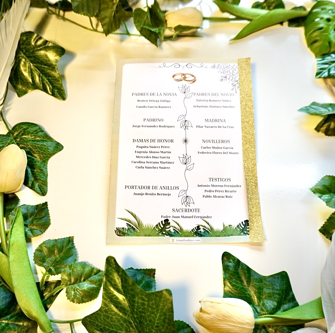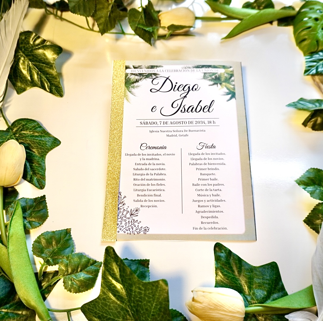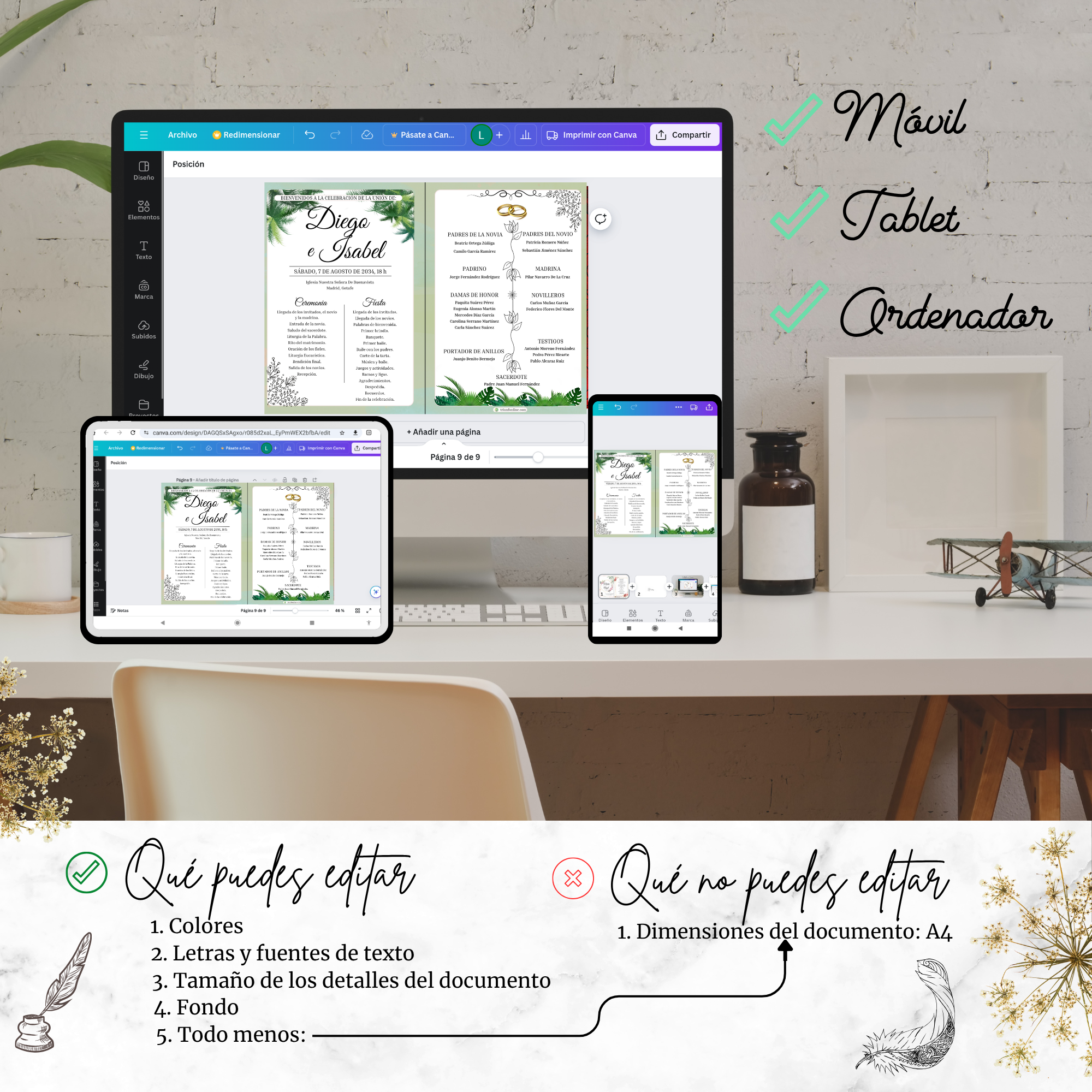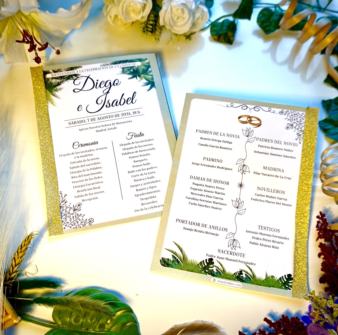 📥 Entrega digital editable, personalizada con los nombres, fecha, lugar y estructura de tu ceremonia y celebración.