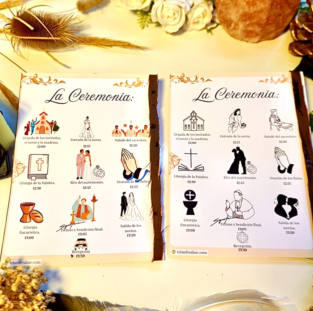 Entrada, lecturas, votos, ritos simbólicos y salida: todo perfectamente estructurado para una experiencia fluida y emocional para todos tus invitados.