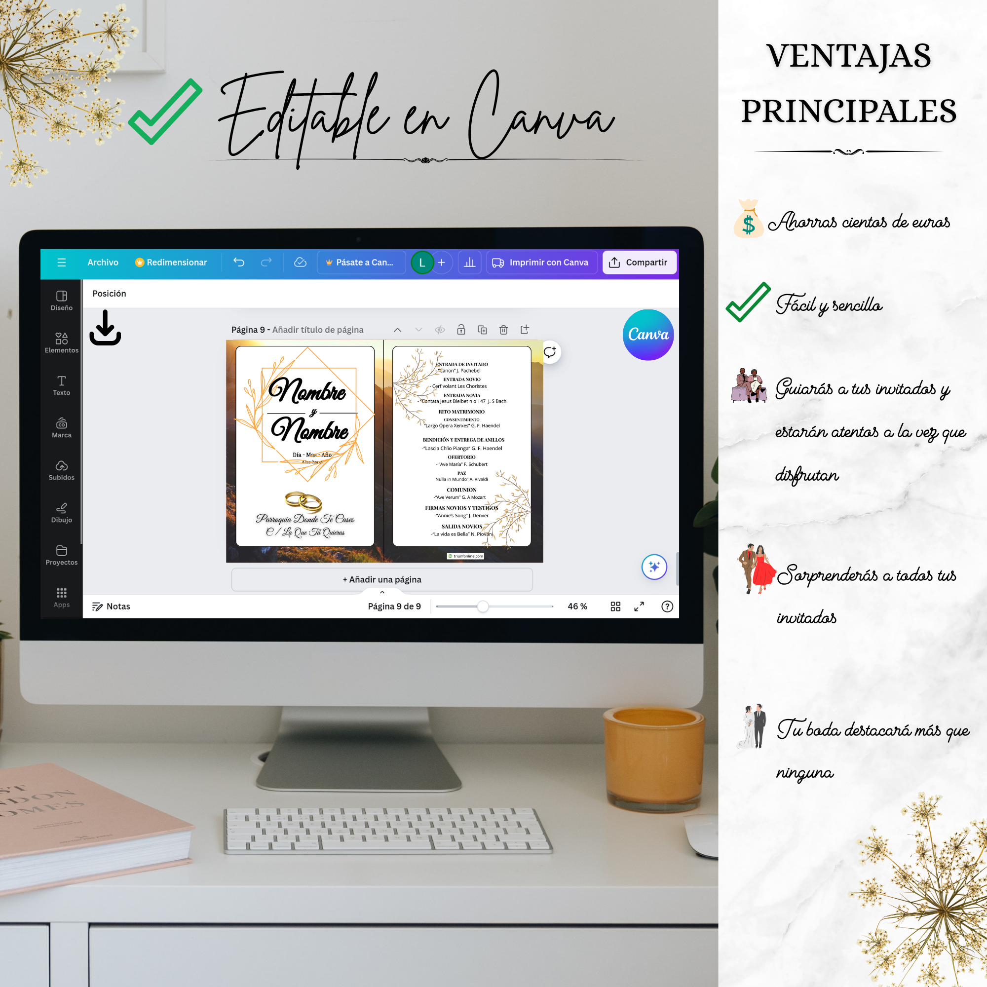📥 Entrega digital editable, con los nombres, fecha, lugar y el repertorio musical personalizado para vuestra ceremonia.
