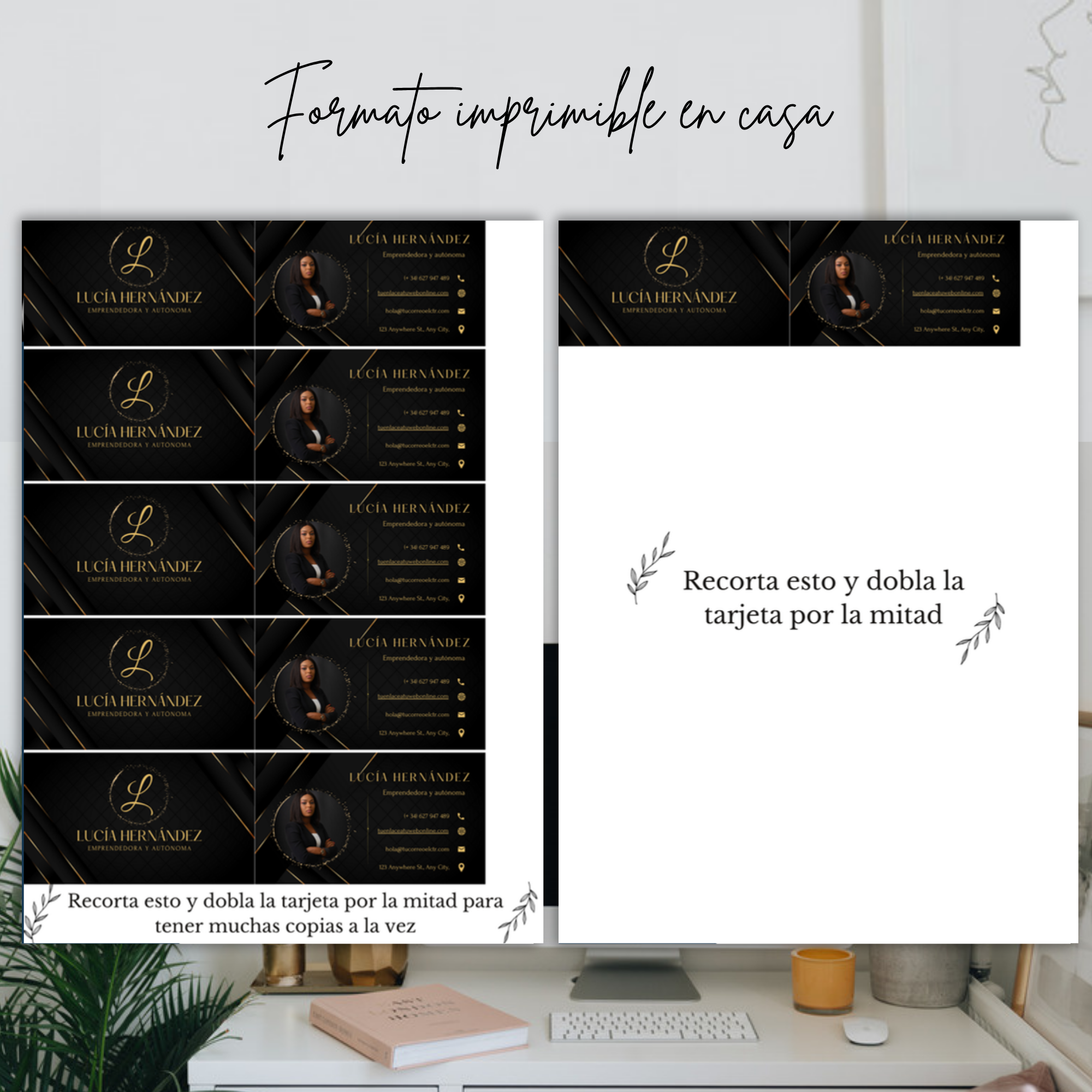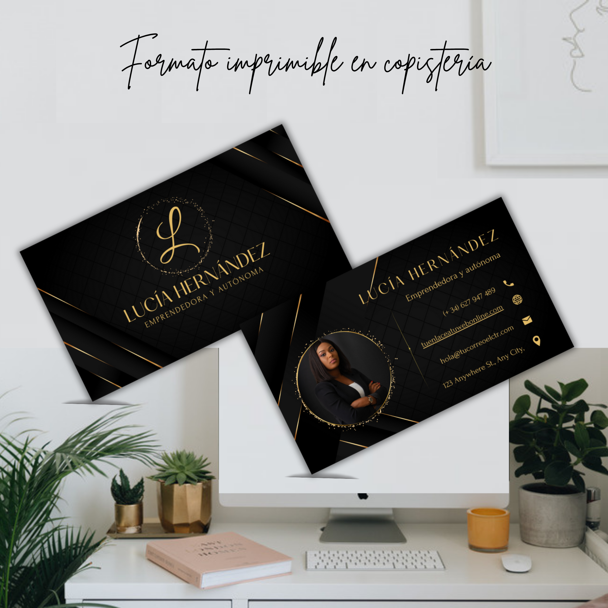 • Un diseño limpio y poderoso que atrae la atención al instante, dejando espacio visual para que la marca personal respire.