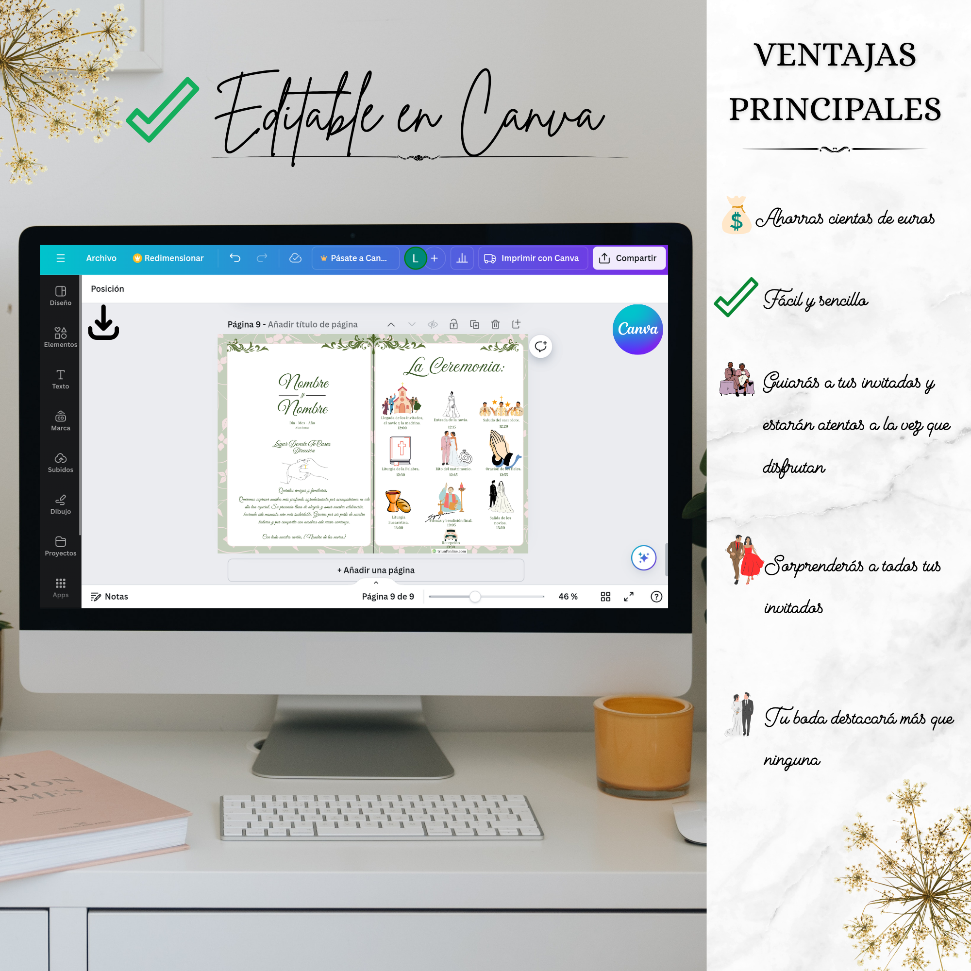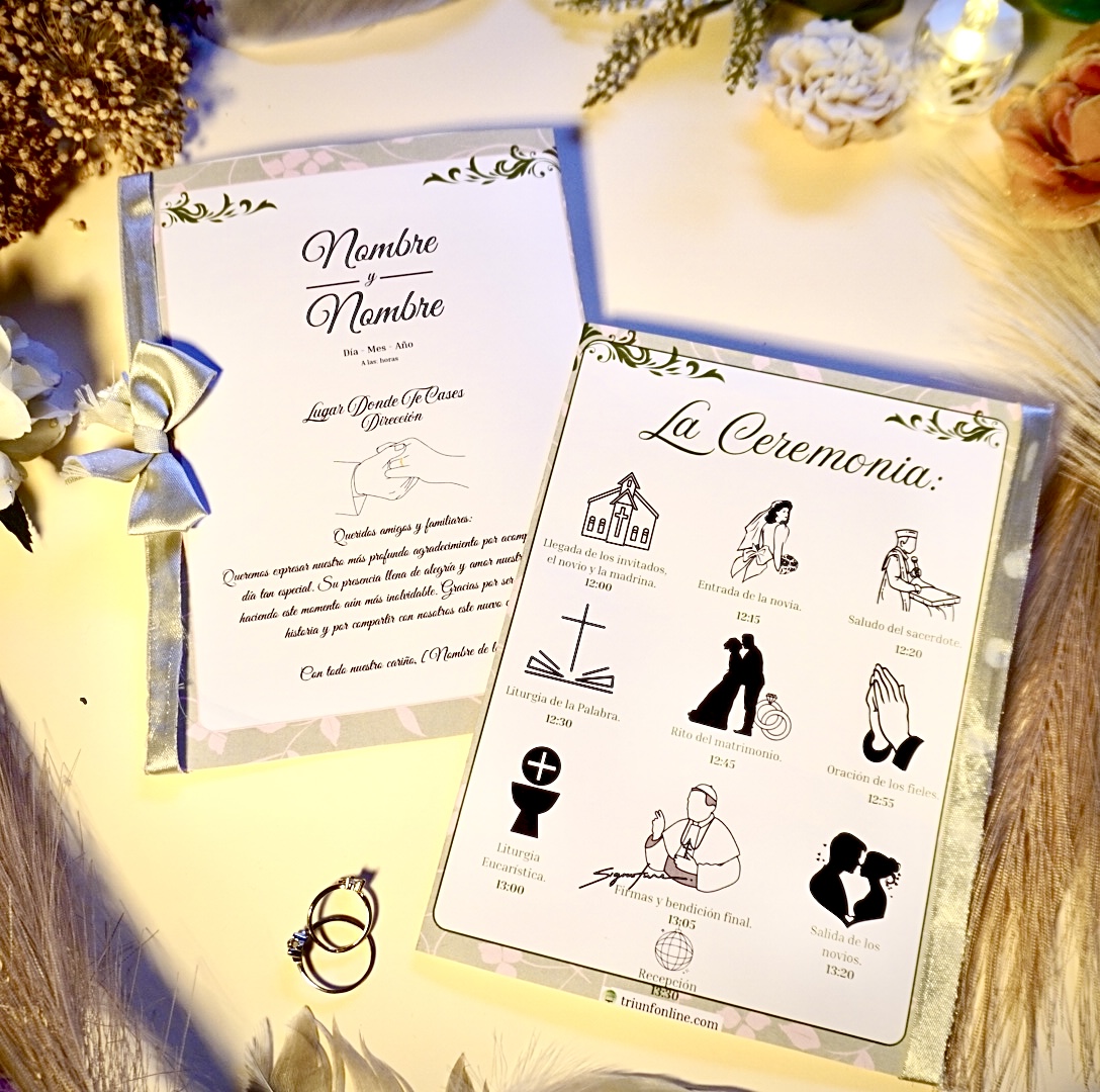 Contiene los momentos clave de la ceremonia organizados de manera intuitiva y estética.