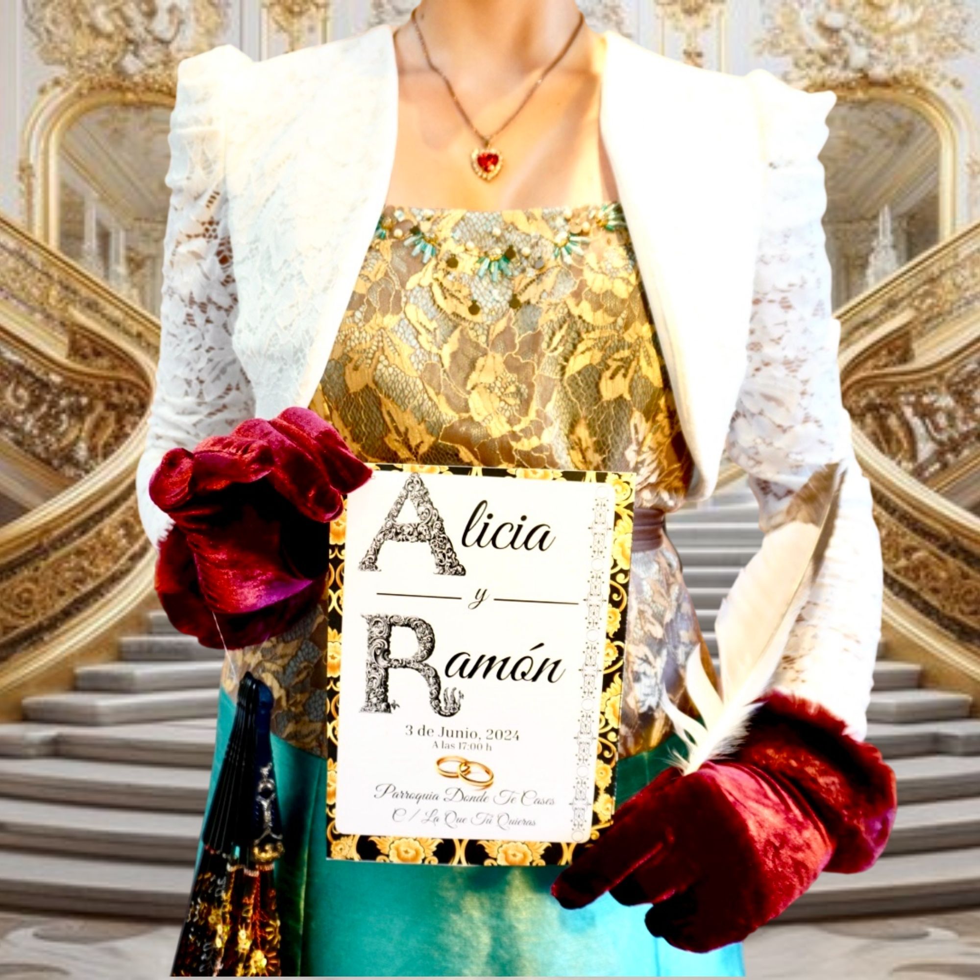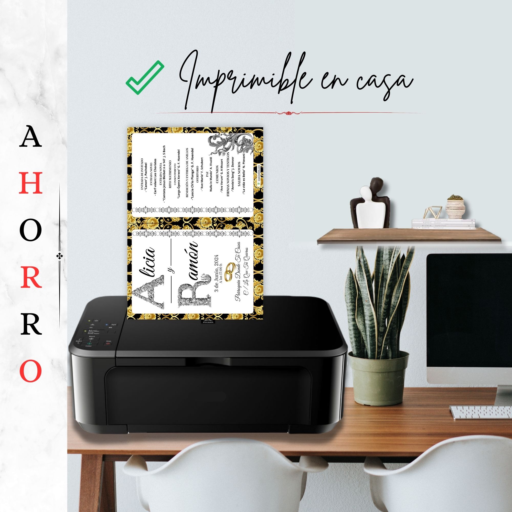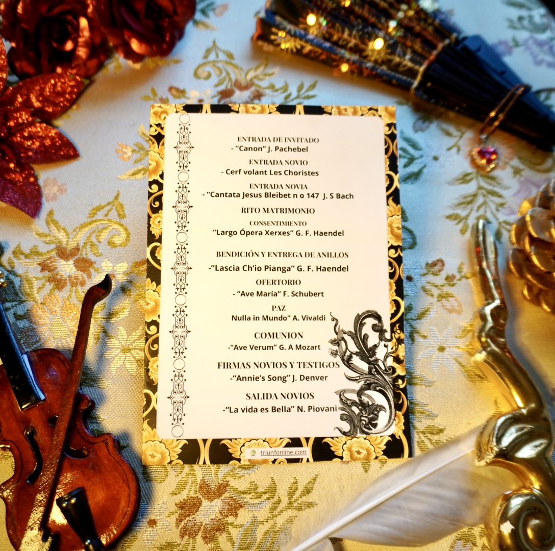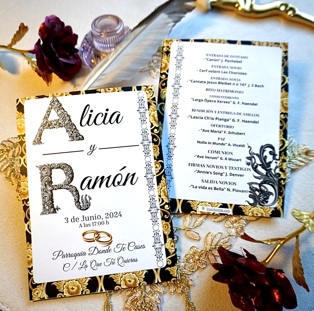 Puedes combinarlo con los programas de ceremonia, recepción o el pack completo con la misma estética dorada y barroca para un evento visualmente armonizado.