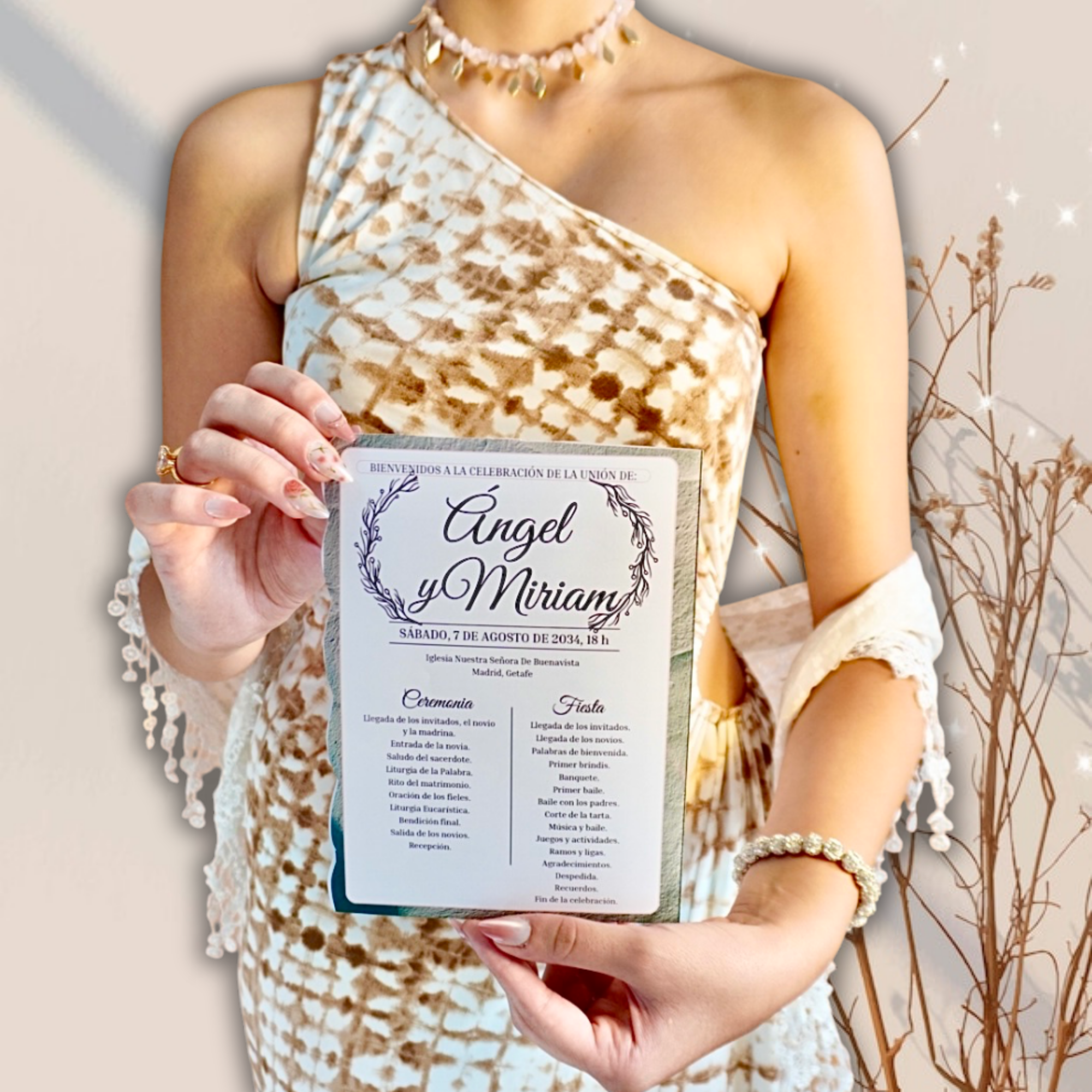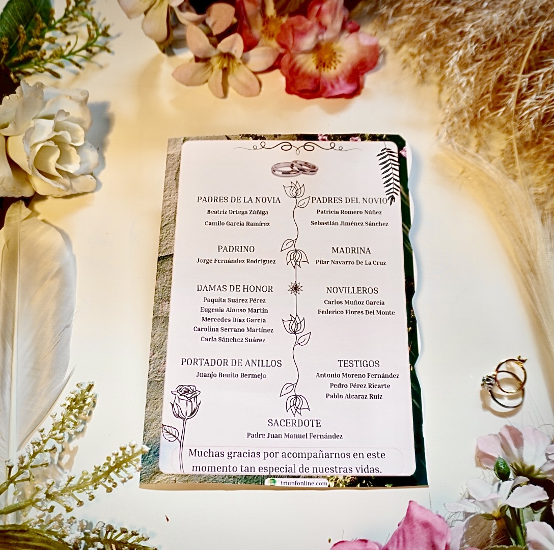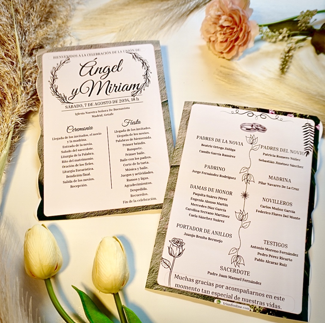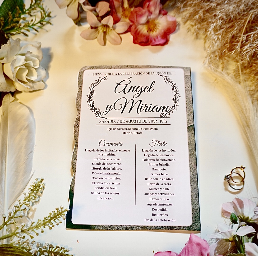 📥 Entrega digital editable, personalizada con los nombres, fecha, lugar y estructura de tu ceremonia y celebración.