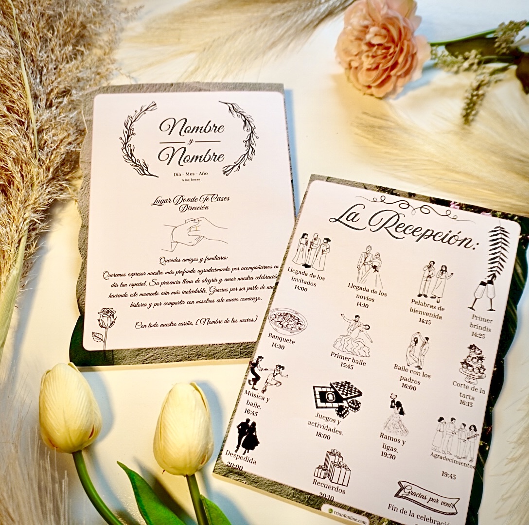 🎁 Coordínalo con sus otras opciones a la par (musical, ceremonia y completo) para conseguir un conjunto visual que respira unidad, elegancia y personalidad desde el primer al último detalle.