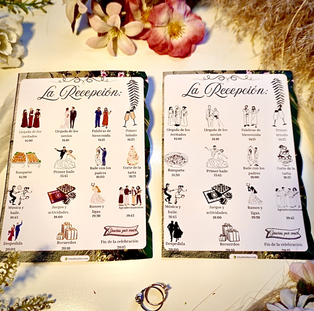 Te mostrará todas las partes de la recepción en tu boda de manera muy visual.