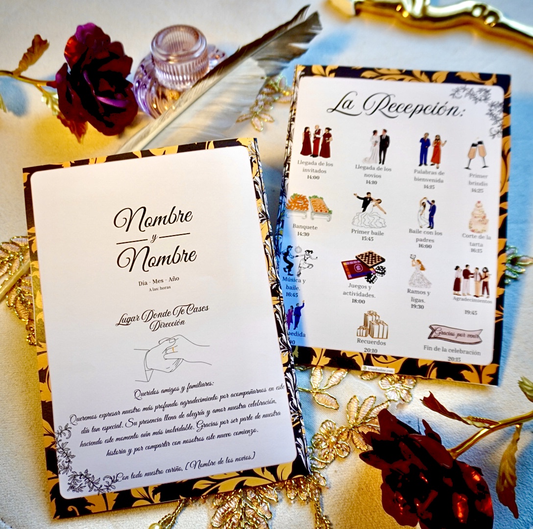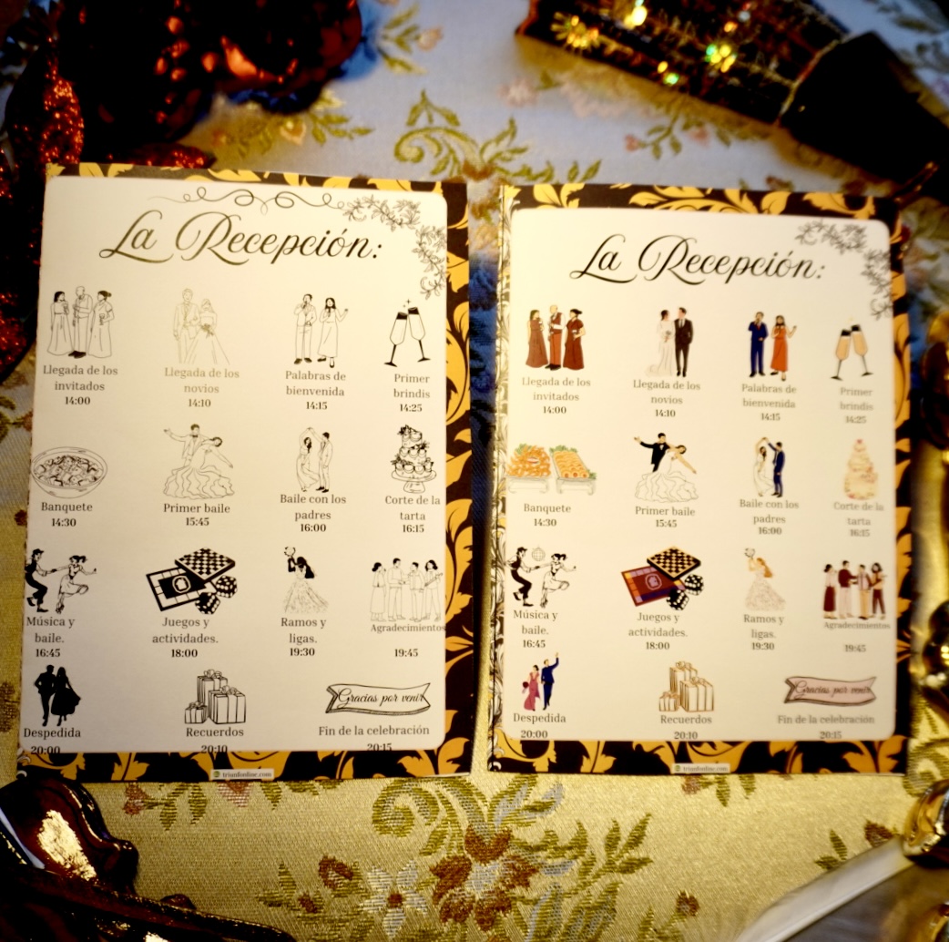 Claramente señalizados y personalizables: comidas, bailes, intervenciones, música, agradecimientos…