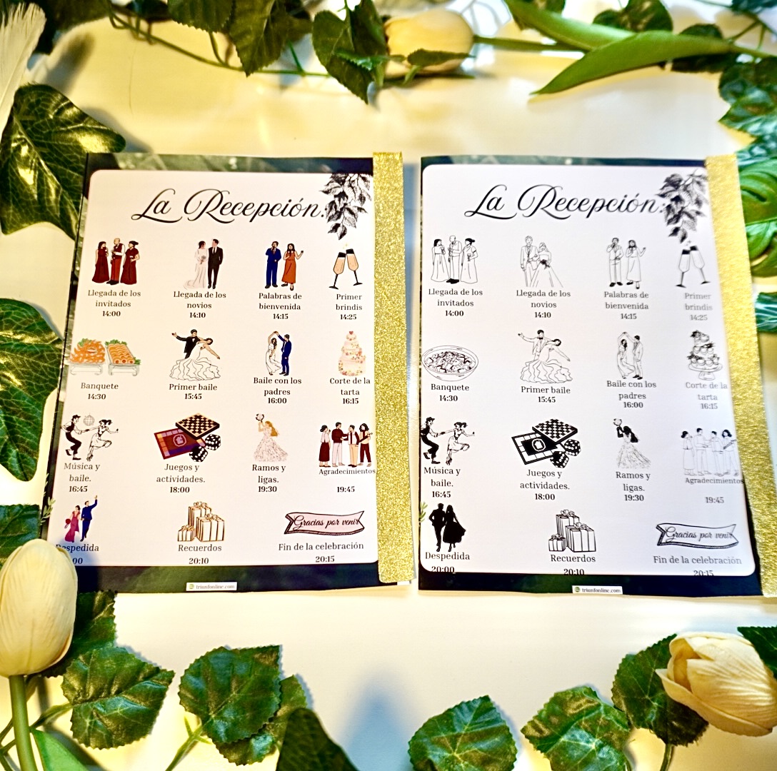 🎁 Coordínalo con sus otras opciones a la par (programa musical, de ceremonia y completo) para conseguir un conjunto visual que respira unidad, elegancia y personalidad desde el primer al último detalle.
