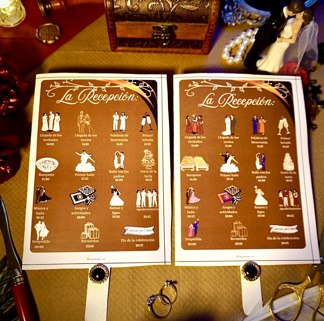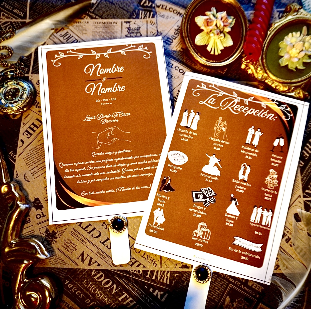 🎁 Coordínalo con sus otras opciones a la par (programa musical, de ceremonia y completo) para conseguir un conjunto visual que respira unidad, elegancia y personalidad desde el primer al último detalle.