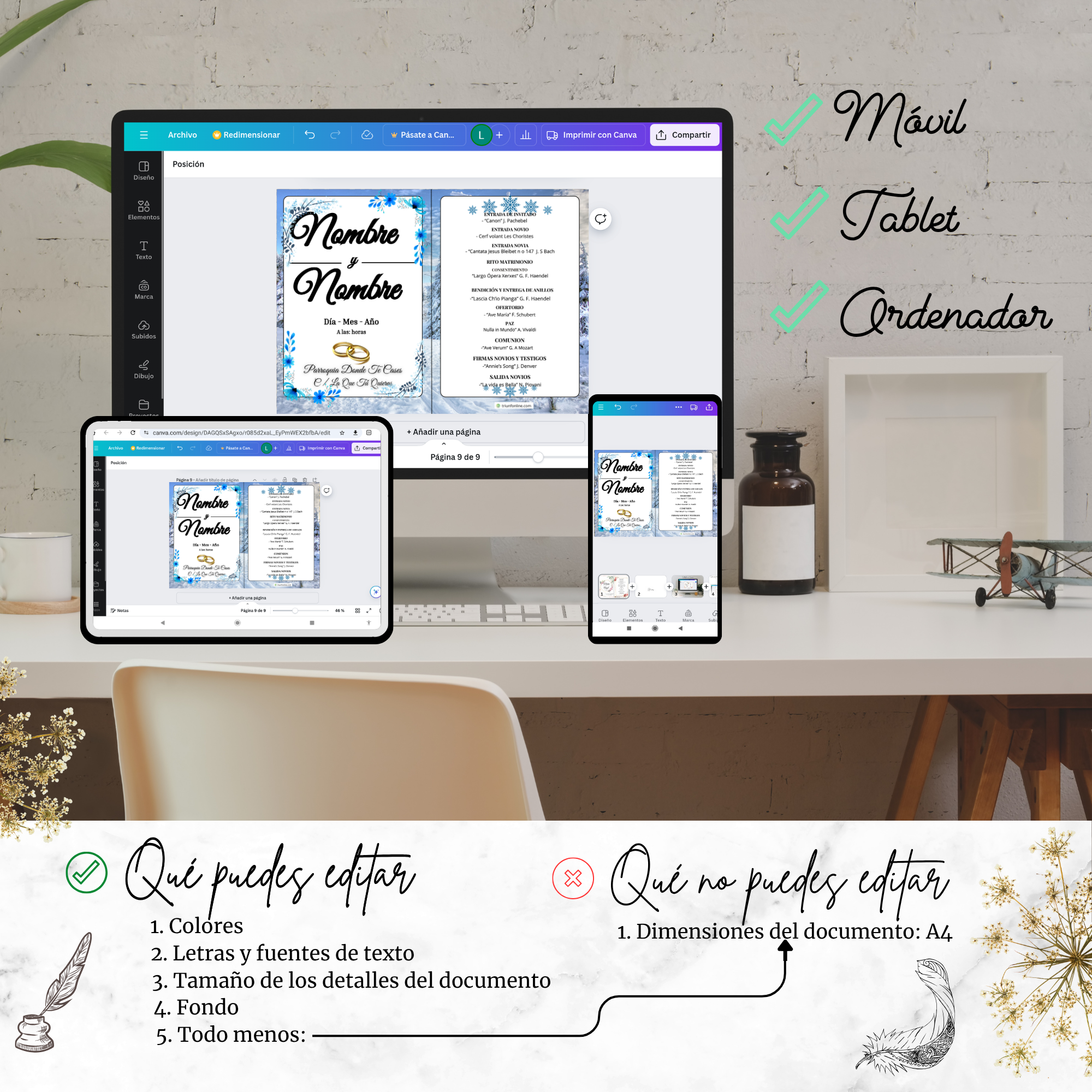 📥 Entrega digital editable, con los nombres, fecha, lugar y el repertorio musical personalizado para vuestra ceremonia.