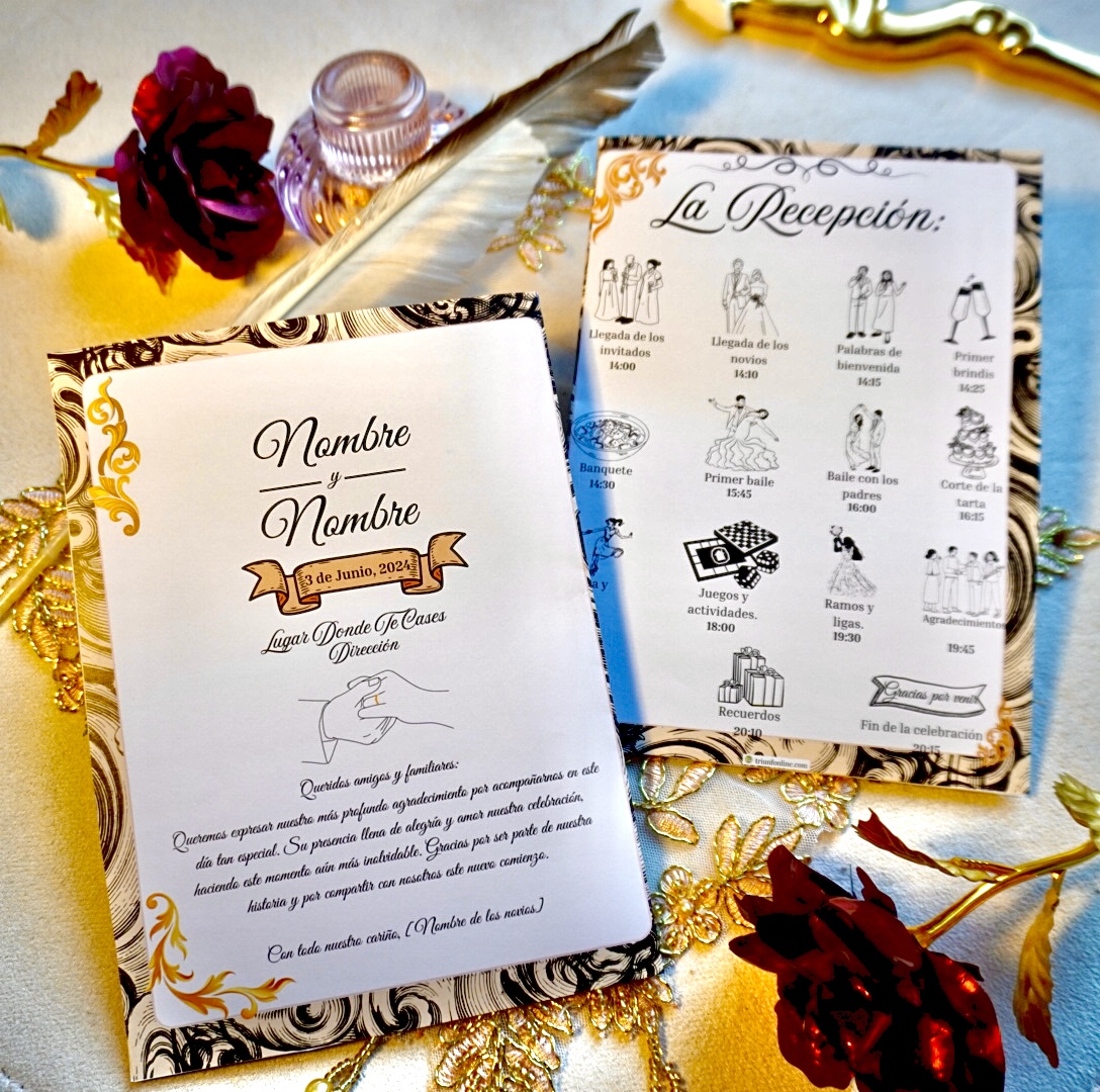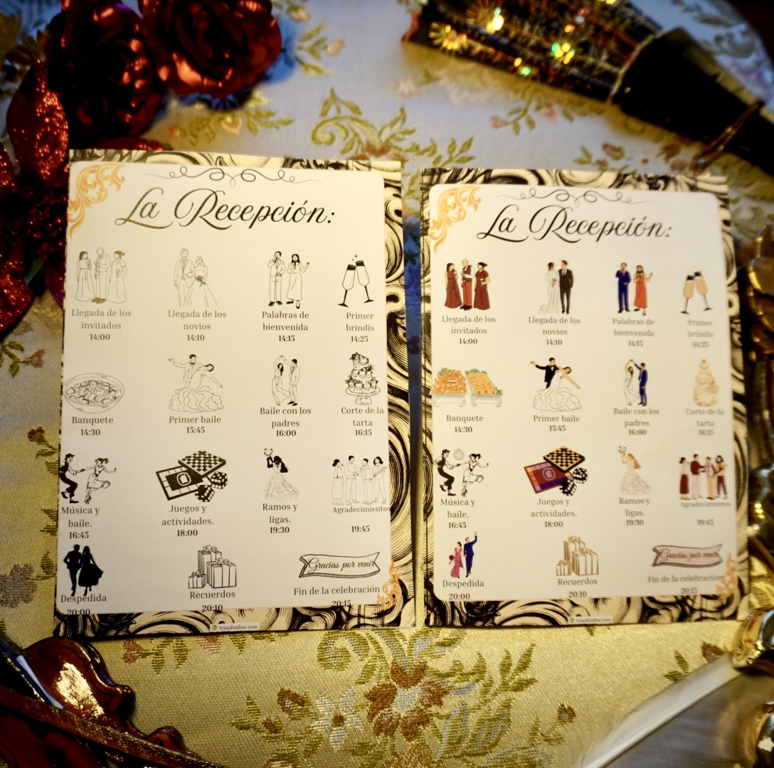 Todo el guion de la recepción de forma clara, visual y editable: platos, brindis, intervenciones, momentos musicales…