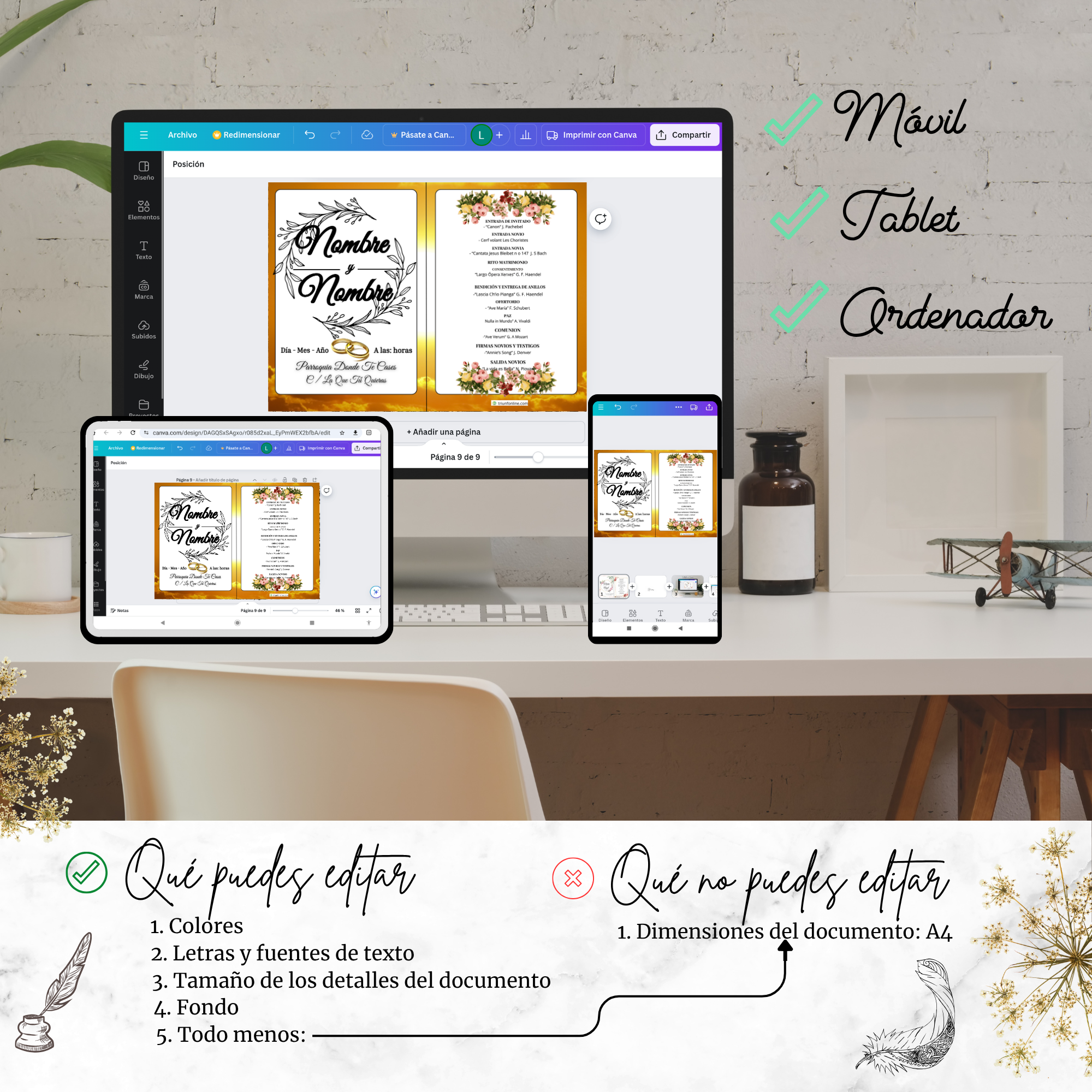 📥 Entrega digital editable, con los nombres, fecha, lugar y el repertorio musical personalizado para vuestra ceremonia.