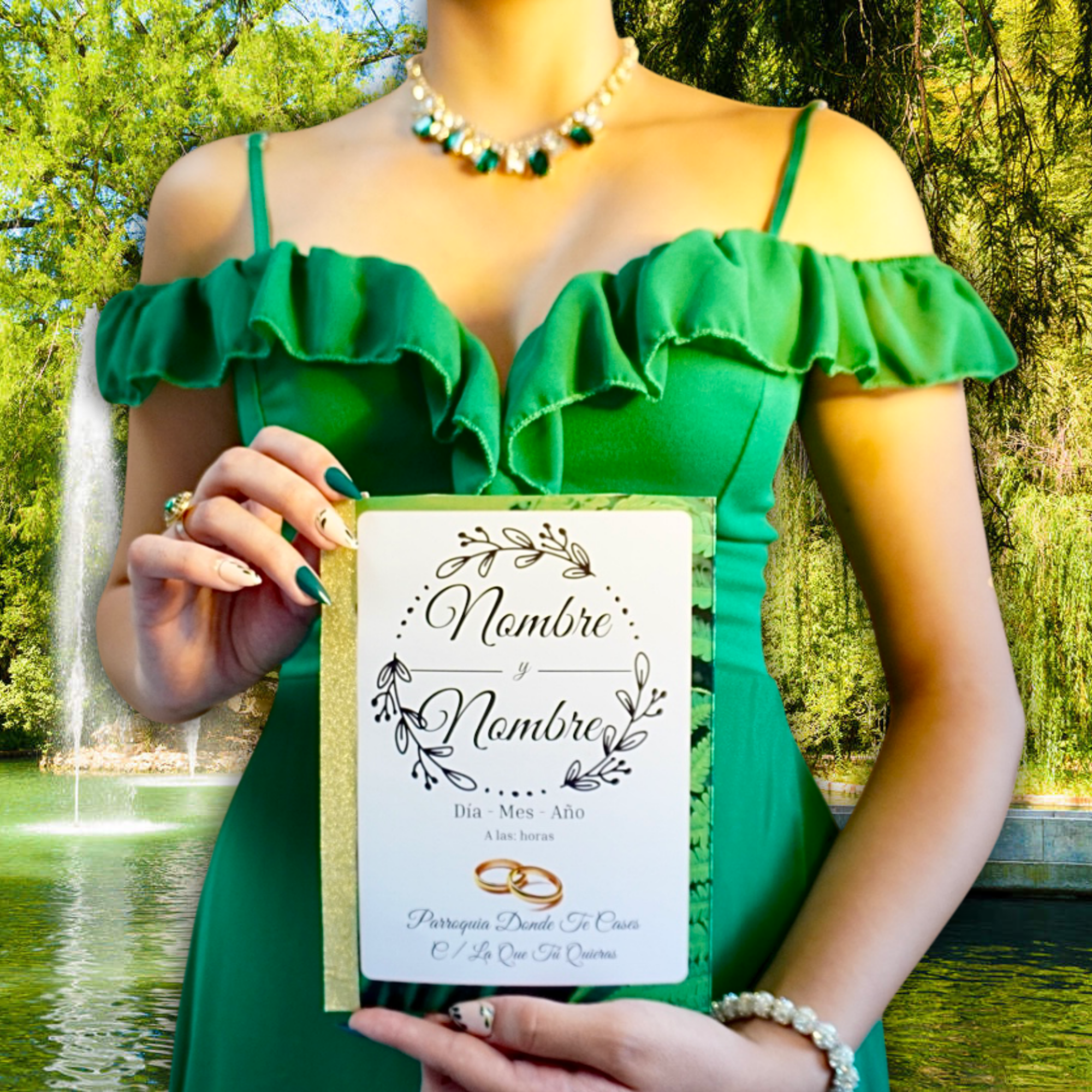 Este diseño resalta por su fondo verde potente, transmitiendo fuerza, elegancia y conexión con la naturaleza. Los detalles en negro, sutiles y simétricos, aportan un toque de estructura y sofisticación que eleva todo el conjunto sin perder naturalidad.