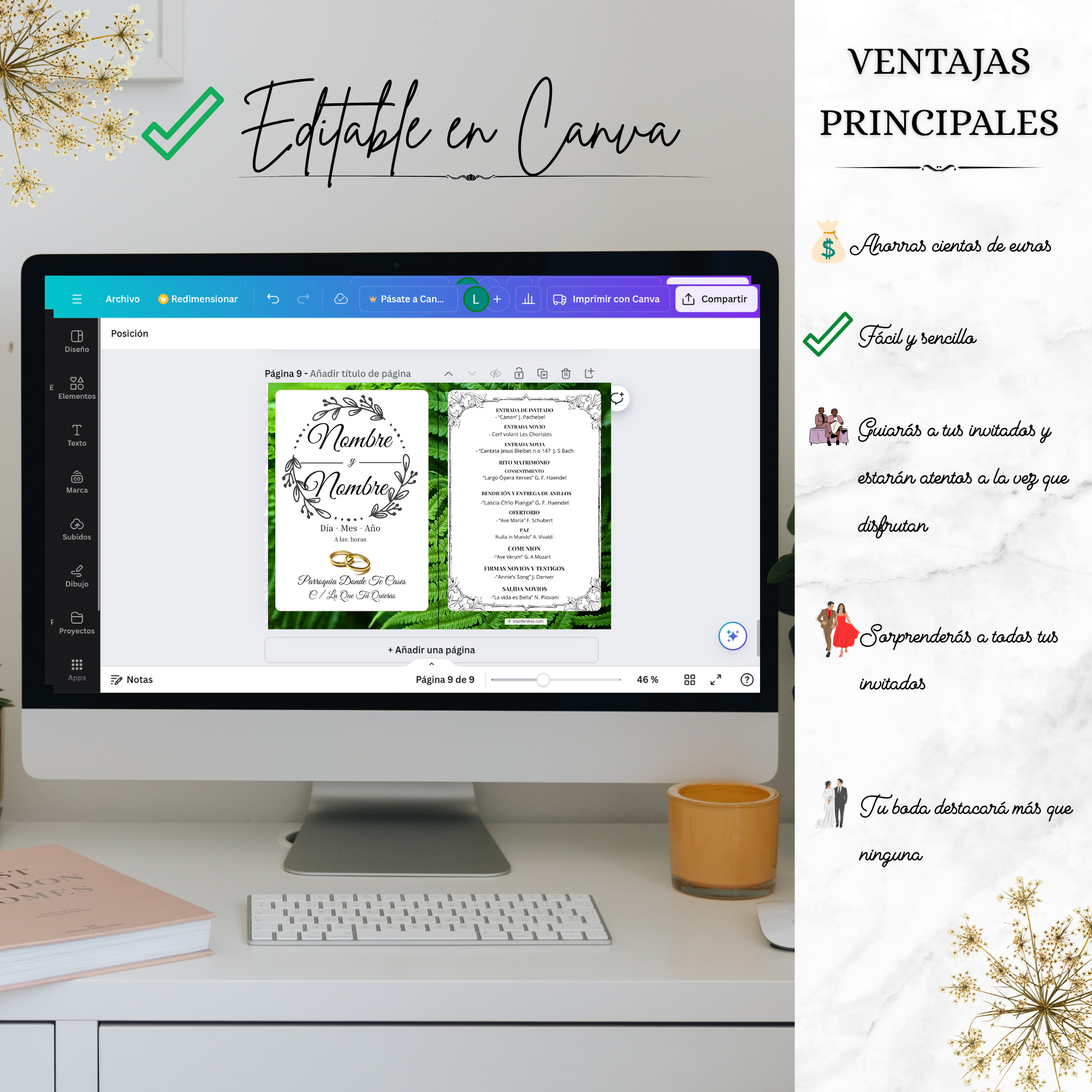 📥 Entrega digital editable, personalizada con los nombres, fecha, lugar y estructura musical de tu ceremonia.