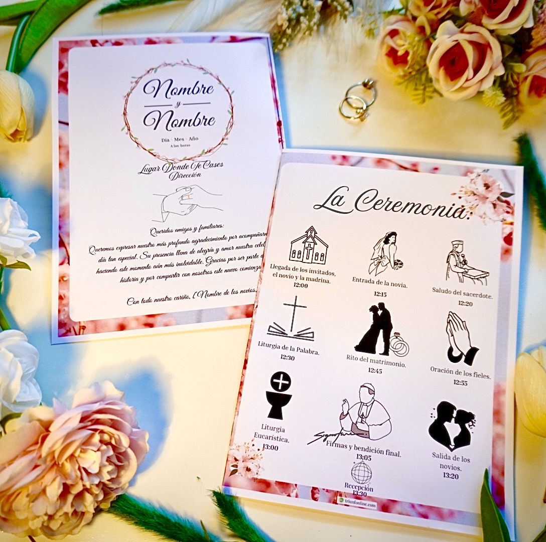 Te mostrará todas las partes de la ceremonia en tu boda de manera muy visual.