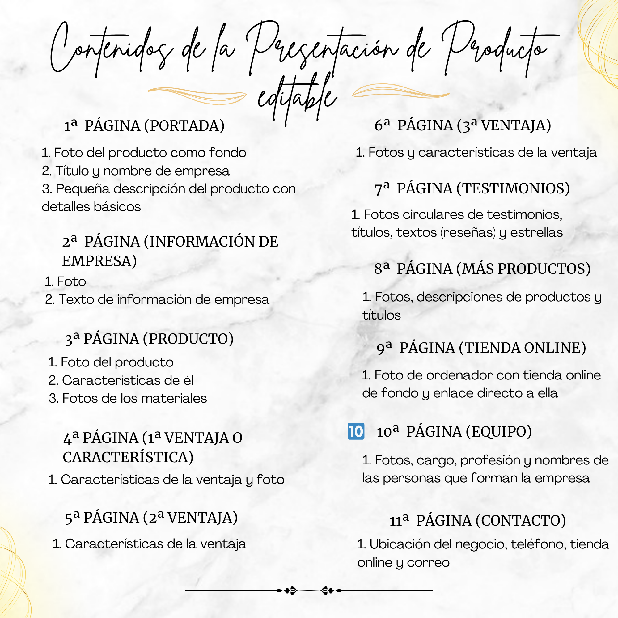 Presenta tu producto a clientes, inversores, socios, colaboradores o publica la presentación en tus redes o web para que todo el mundo que las visite, conozca cada detalle de tu producto y así les incite a la compra.