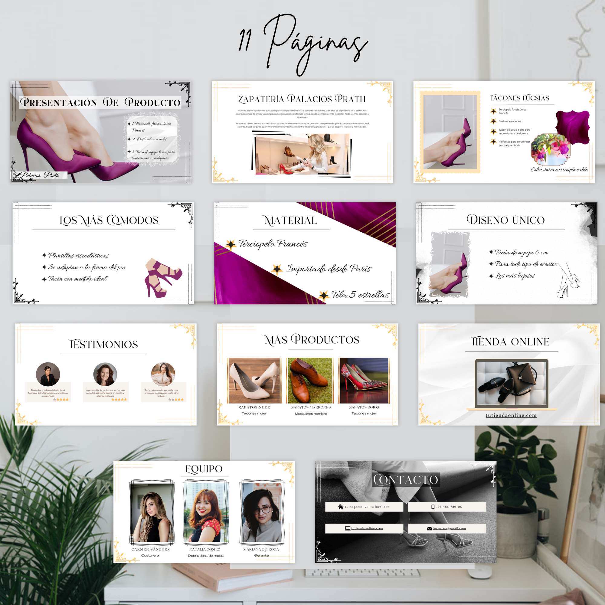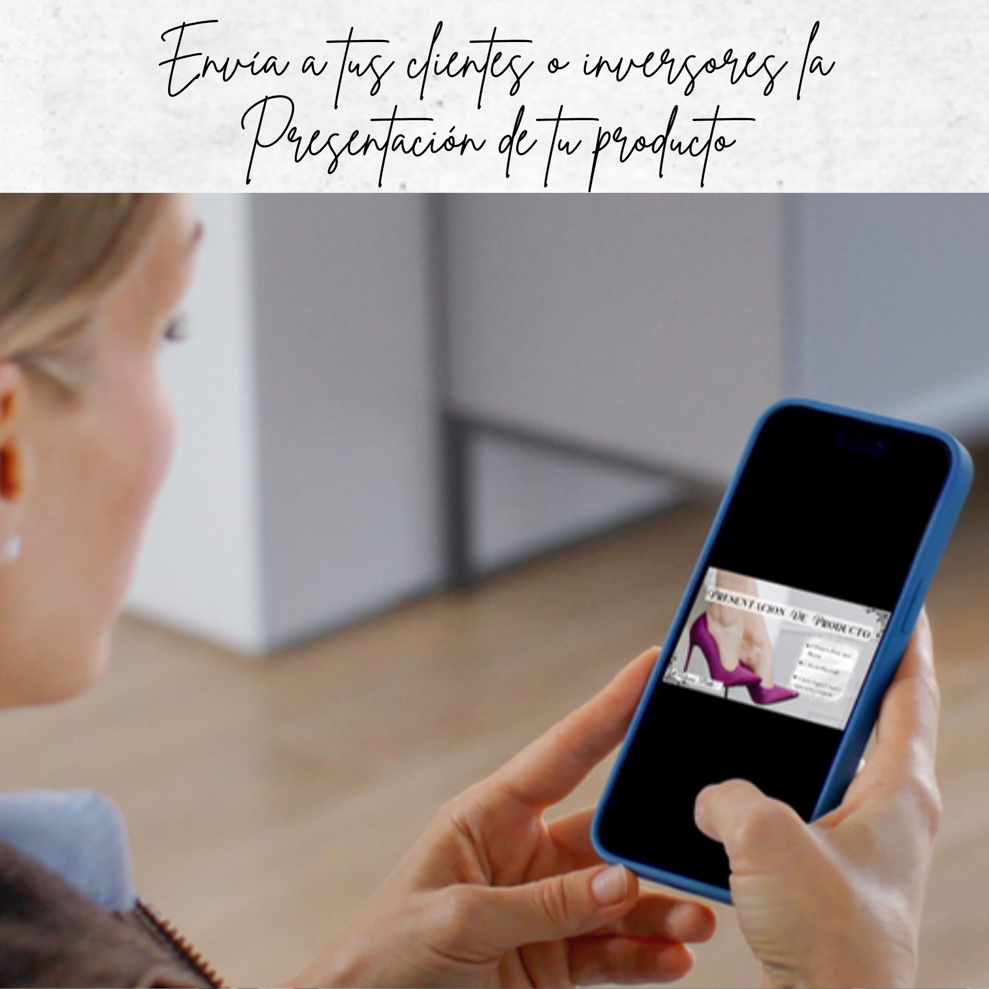 Una herramienta elegante, fresca y universal para mostrar tu producto a clientes, inversores, socios o colaboradores. Perfecta para usar en tu web, fijar en tu perfil o presentar en reuniones, con un diseño femenino sutil pero adaptable a cualquier sector.