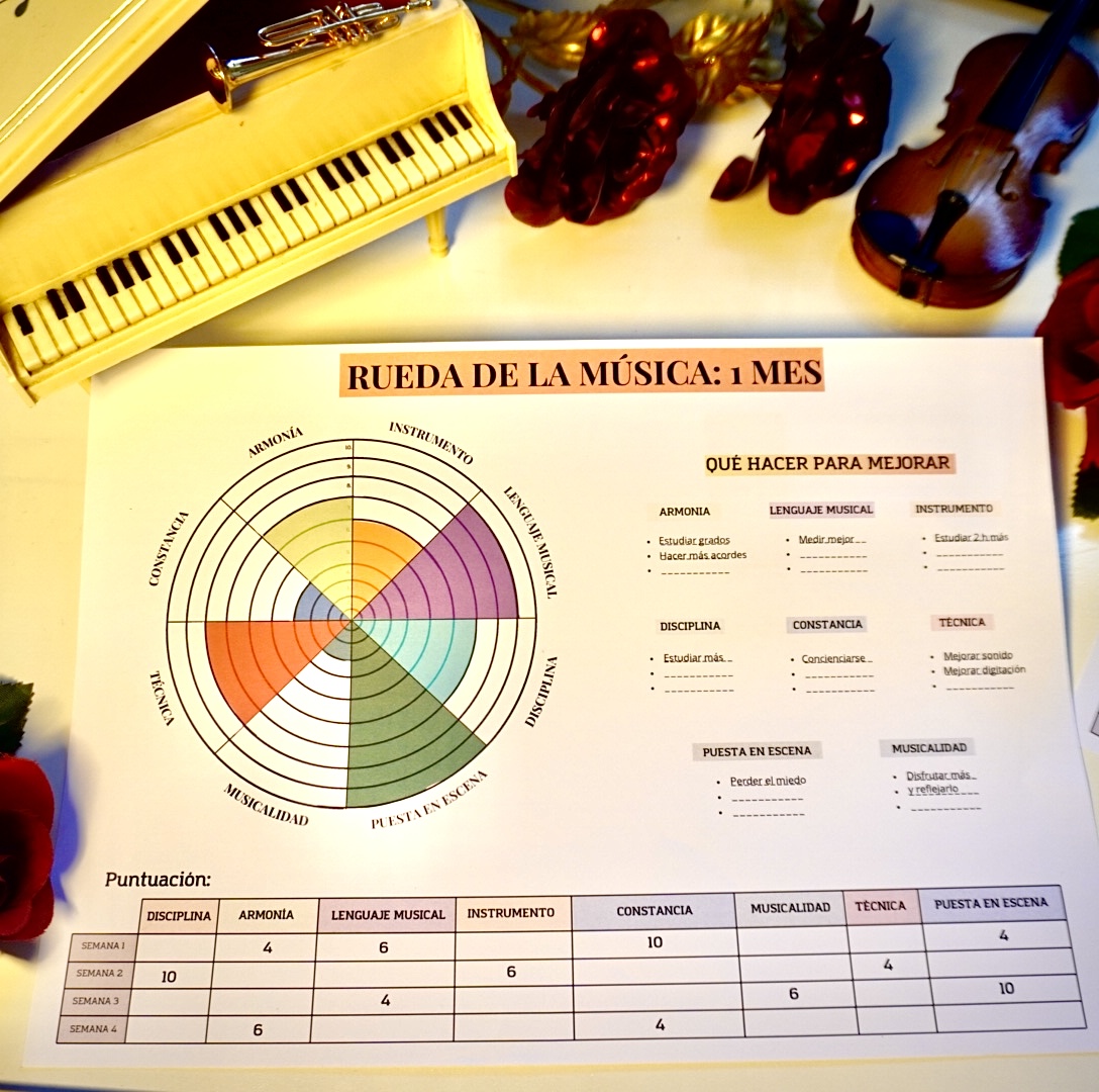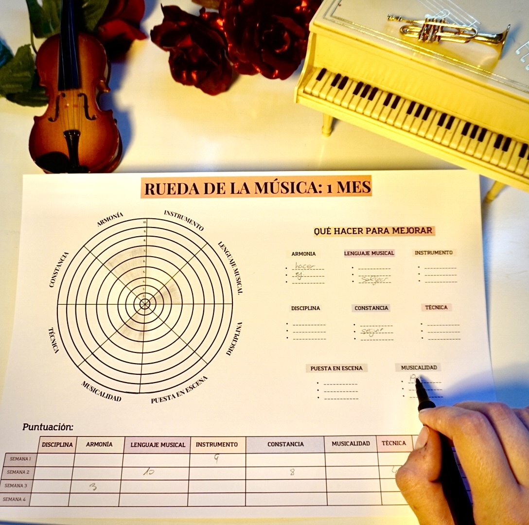 Esta plantilla es la herramienta perfecta para estructurar tu aprendizaje musical, identificar áreas de mejora y trazar un camino claro hacia tus metas artísticas.