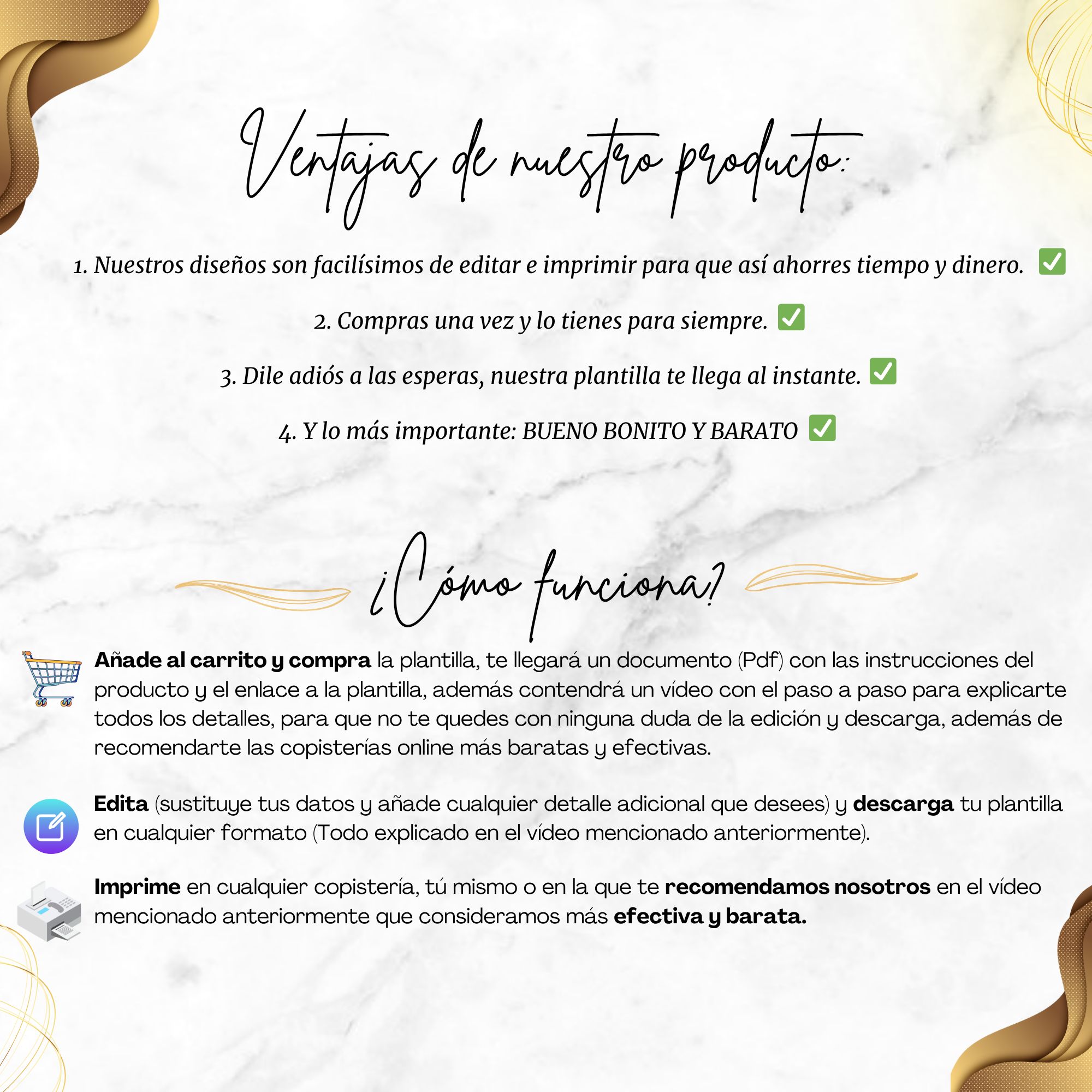 Editable en Canva: Personaliza colores, fuentes y estilo para que la plantilla se adapte a tus preferencias.